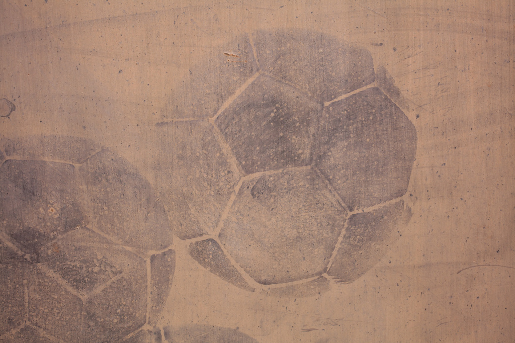 Eerder vond ik onder invloed van het WK voetbal en daarbij de bijzondere prestaties van het Nederlands elftal een andere voetbalafdruk op een oude deur ergens in een industriegebied in Rotterdam. Daarna zag ik er opeens één op de rug van een voetballende vader. Hij had de afdruk opgelopen tijdens een fanatiek potje voetbal met een aantal enthousiaste kinderen.
